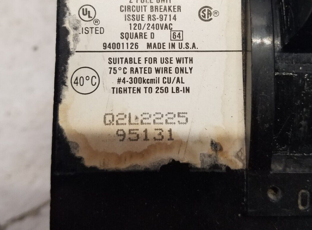 Square D Q2L2225 2 pole 225 Amp 240 volt
