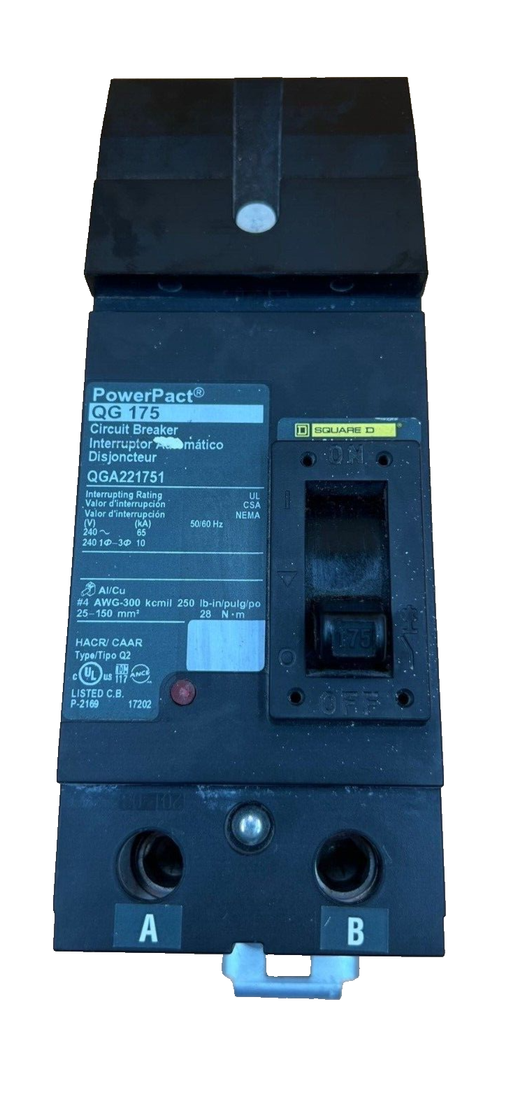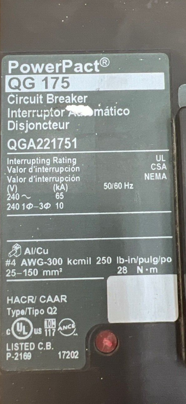 Square D QGA221751 I-Line Circuit Breaker 175A 240V 2P AB 175 Amp 2 Pole