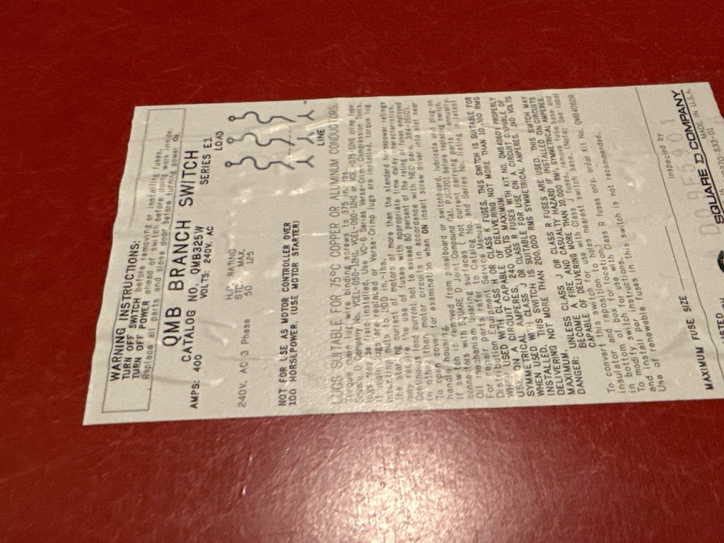 Square D QMB325W QMB Branch Panel Switch 400A 3P 240V 400 Amp 3 Pole