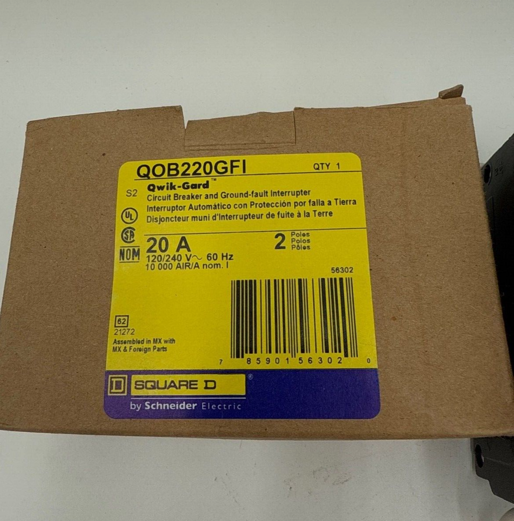 Sq D QOB220GFI Circuit Breaker 20A 2P 240V QOB 20 Amp 2 Pole Ground Fault