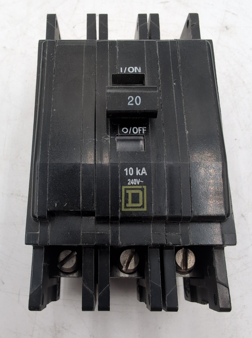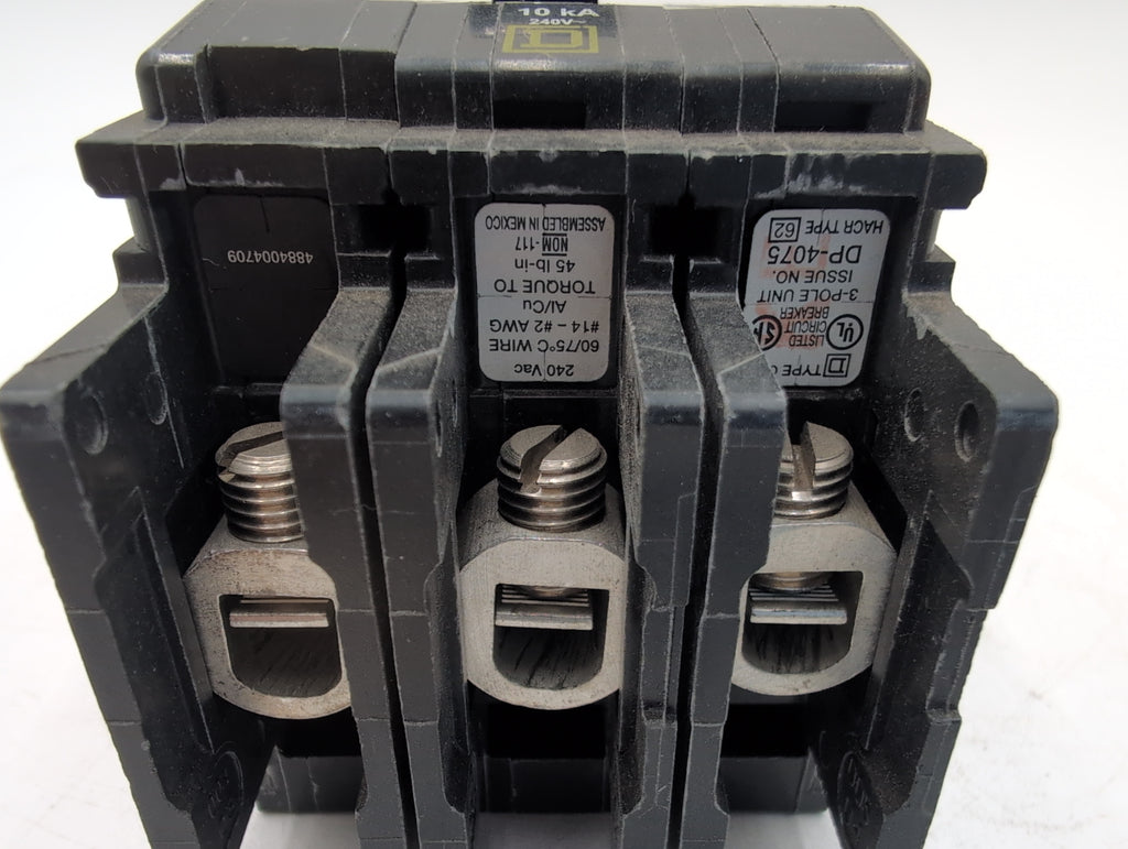 The Square D QOU320 is a 20 Amp, 3-pole miniature circuit breaker designed for overcurrent protection in OEM panels and industrial applications. It is a unit-mount (bolt-on) breaker that supports both AC and DC electrical systems.