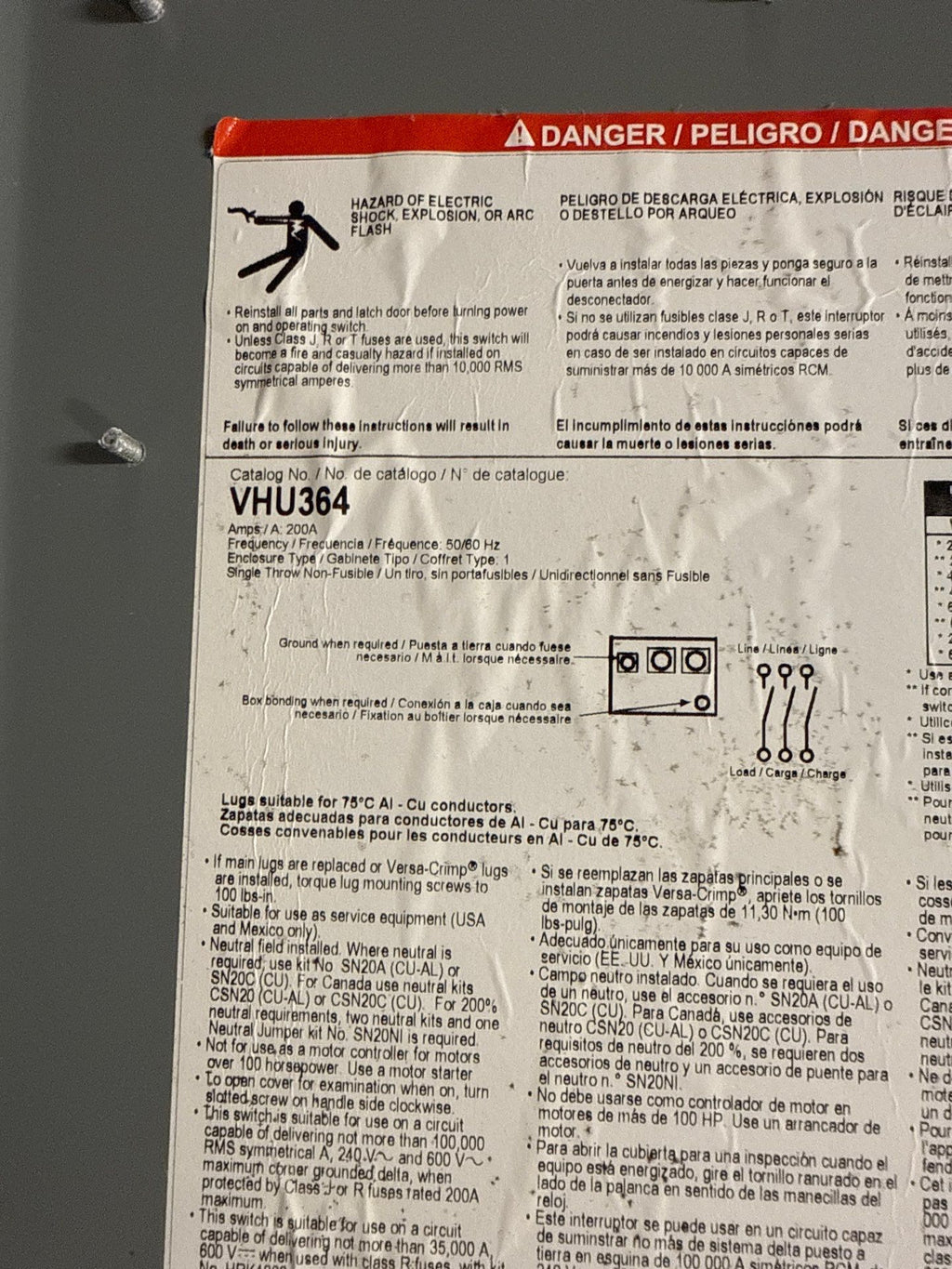Square D VHU364 Safety Disconnect Switch 200A 3P 600V VisiPacT HD 200 Amp
