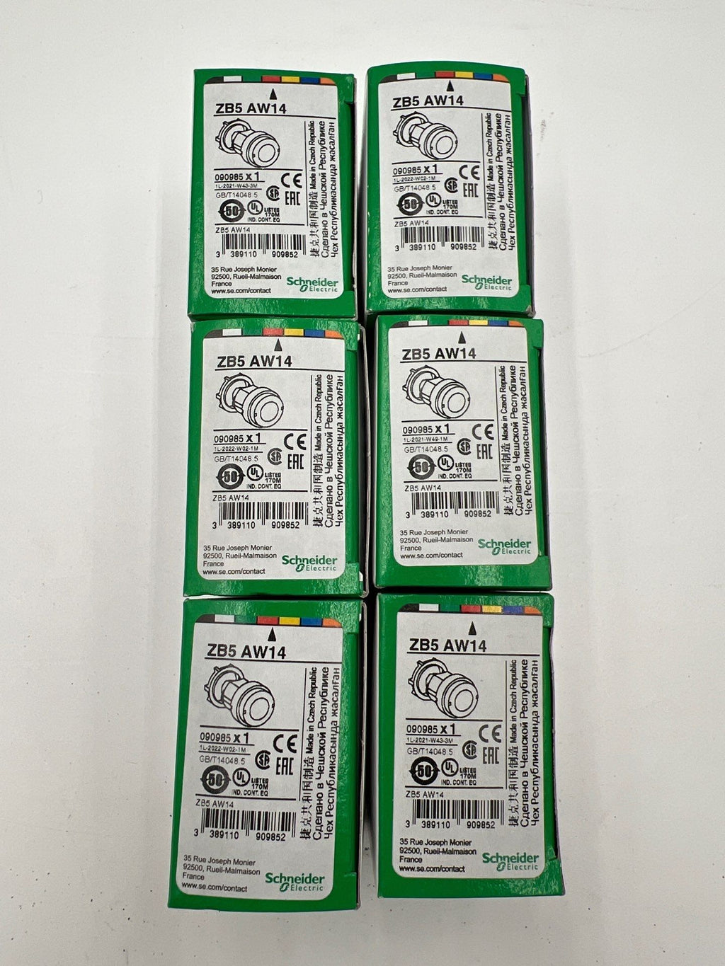 Schneider ZB5AW14 Red Illuminated Pushbutton Head 22mm XB5 6Pk