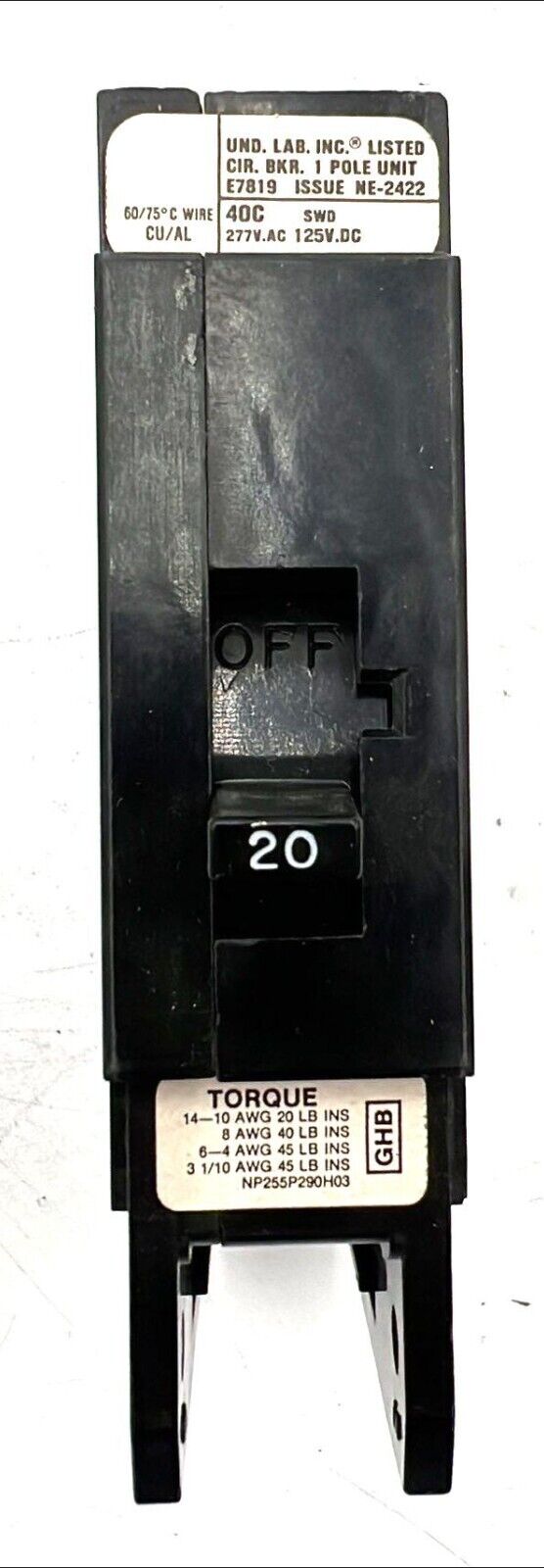 Westinghouse GHB1020 20A 277V 1 Pole Circuit Breaker
