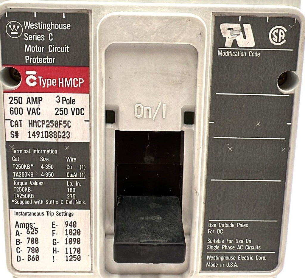 Westinghouse HMCP250F5C 250A 600V 3 Pole Circuit Breaker